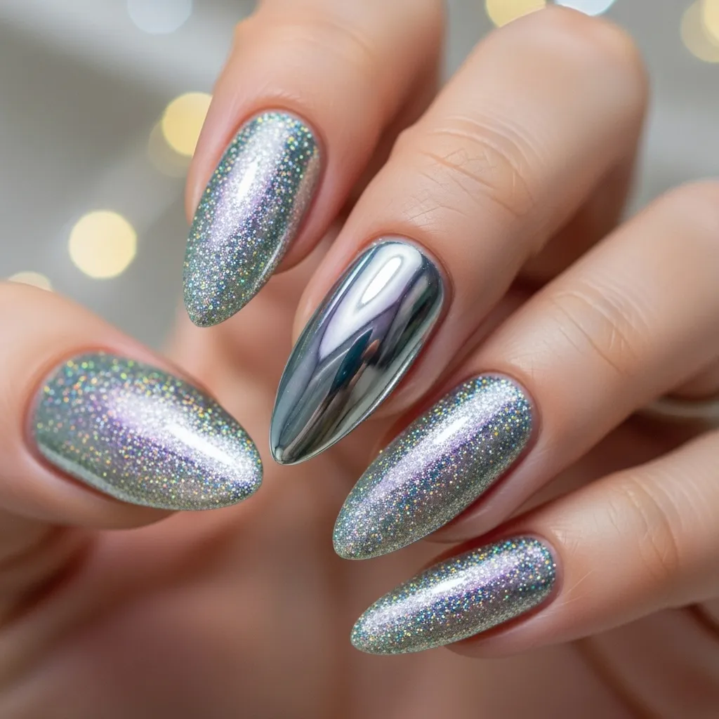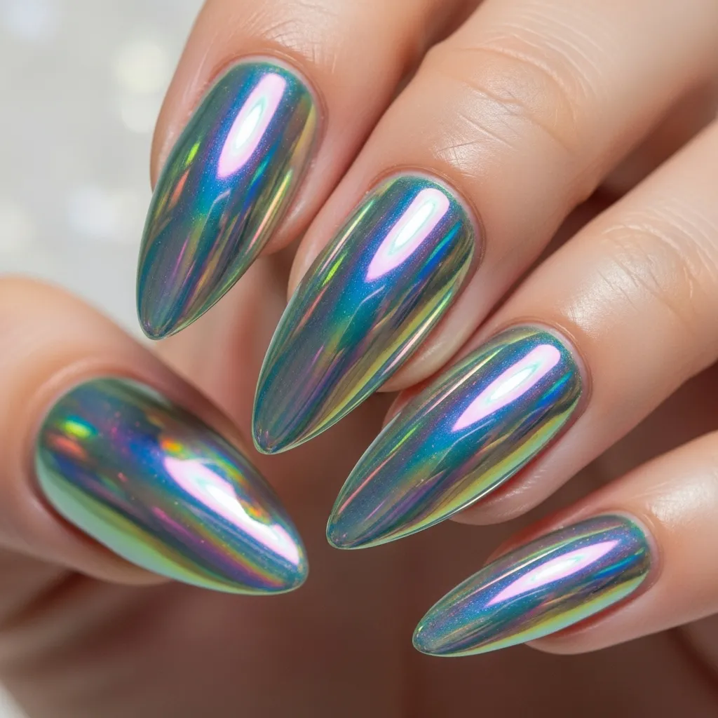 3. Holographic Chrome Nails
