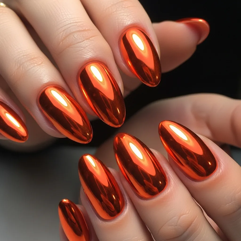 17. Orange Chrome Nails