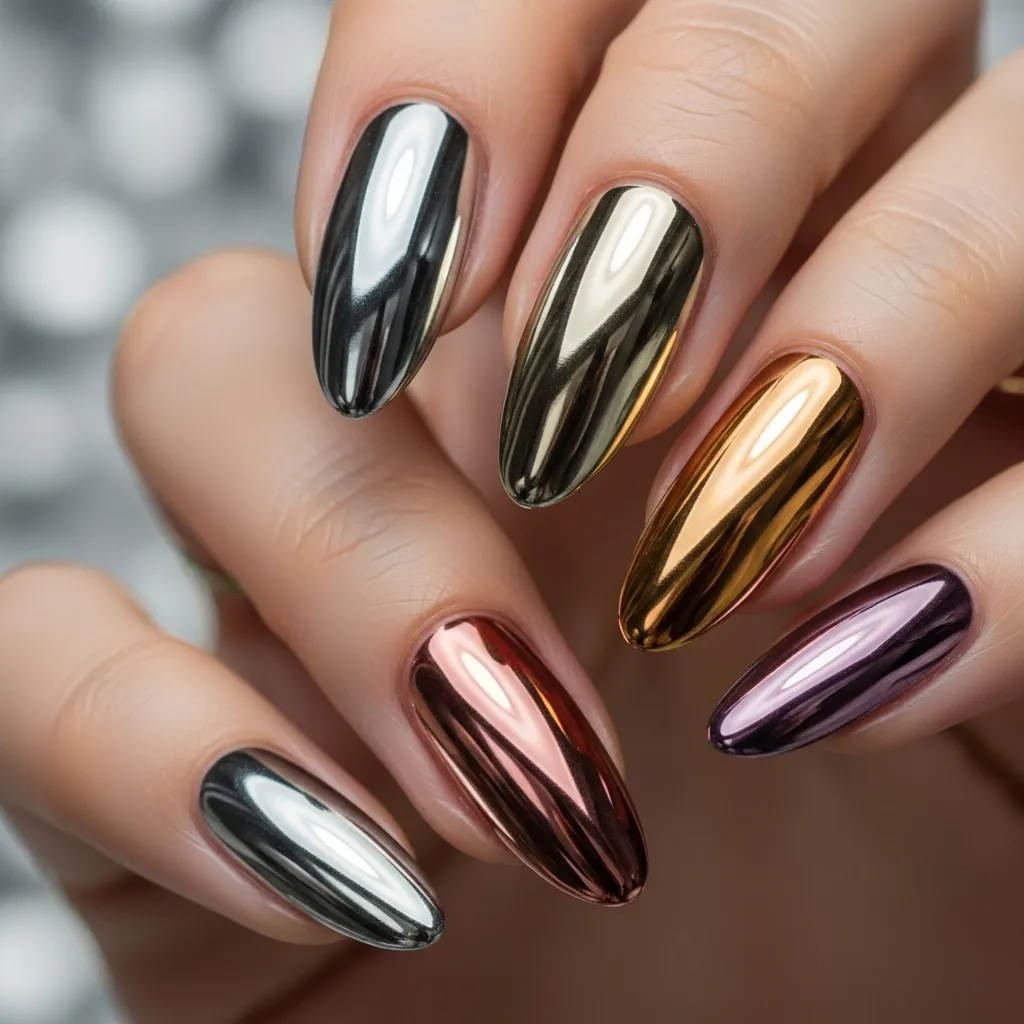 Multi-tone chrome nails are a creative, trendsetting choice for fashion-forward individuals. Blending multiple metallic shades, this style creates a bold, dimensional, and visually striking effect. Perfect for parties, events, and fashion gatherings, multi-tone chrome nails enhance any outfit while highlighting the hands. They suit all nail shapes, from coffin to almond, and are easy to achieve with chrome powders or gel finishes. Accessorizing with jewelry or statement outfits further elevates the look. This versatile trend allows personal expression while maintaining elegance. For fashion lovers seeking uniqueness, multi-tone chrome nails are the ultimate statement-making nail design.