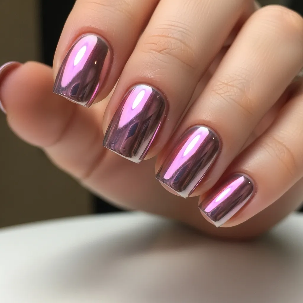 Pink chrome nails offer a feminine twist on metallic trends. The soft pink hue paired with reflective chrome creates a chic, polished look that works for various occasions. From casual brunches to evening parties, these nails elevate any outfit. Easy to achieve using rose-tinted chrome powders, the trend provides both style and durability. Pink chrome nails suit all nail shapes and lengths, making them accessible to everyone. They pair perfectly with gold or silver jewelry and modern outfits, offering subtle glamour with a futuristic edge. Pink chrome nails are a stylish choice for fashion-conscious individuals.