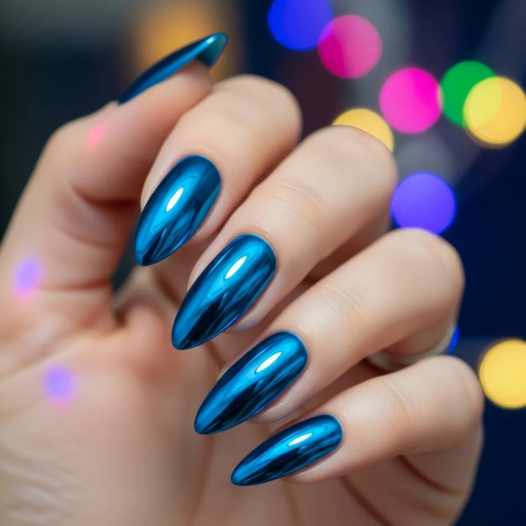 Blue chrome nails are a vibrant and daring choice for fashion lovers. The mirror-like finish adds drama, making hands stand out in any party or event. This trend works on various nail shapes, from stiletto to coffin, allowing personalization for individual style. Easy to create with chrome powders or gel finishes, blue chrome nails are both durable and visually striking. They pair well with silver jewelry or bold outfits, complementing a futuristic aesthetic. For those seeking edgy, statement-making nails, blue chrome provides maximum impact while maintaining a polished, high-fashion look suitable for any occasion.