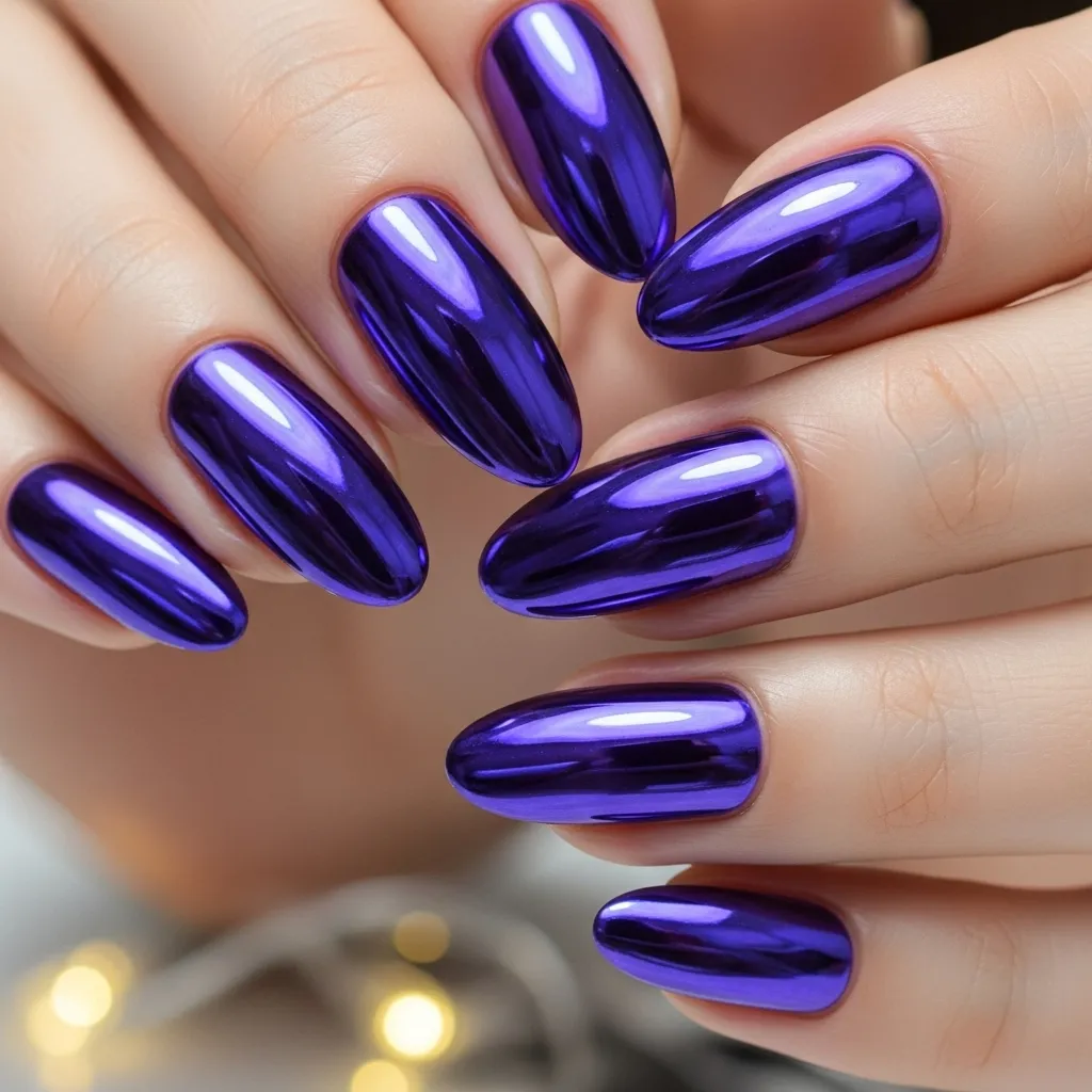 Purple chrome nails combine elegance with modern metallic shine. Their bold color and reflective surface make them ideal for parties, fashion events, or casual glam. Perfect for fashion lovers seeking standout nails, purple chrome enhances the hands and complements statement accessories. This trend works with various nail shapes and lengths, offering versatility and style. Easy to maintain and visually striking, purple chrome nails are a must-try for anyone who loves bold yet sophisticated nail designs.