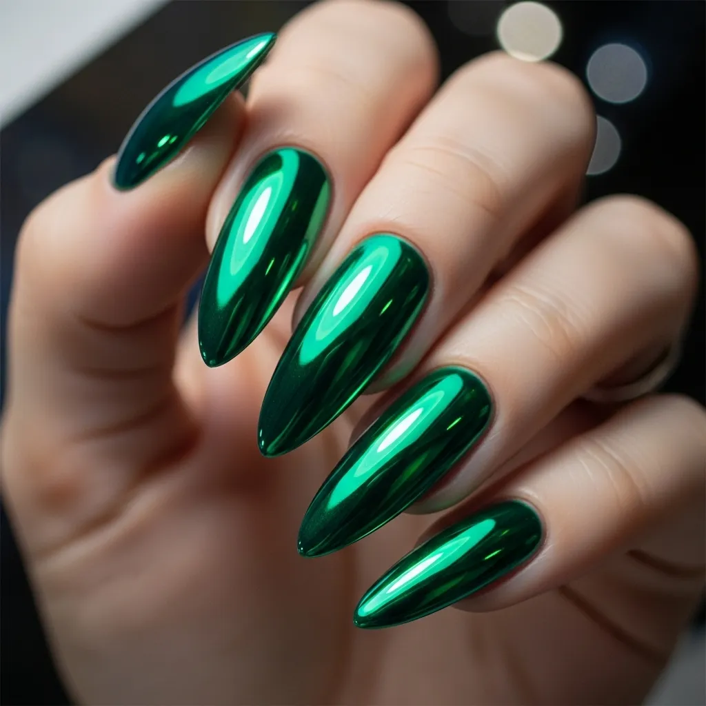 7. Green Chrome Nails