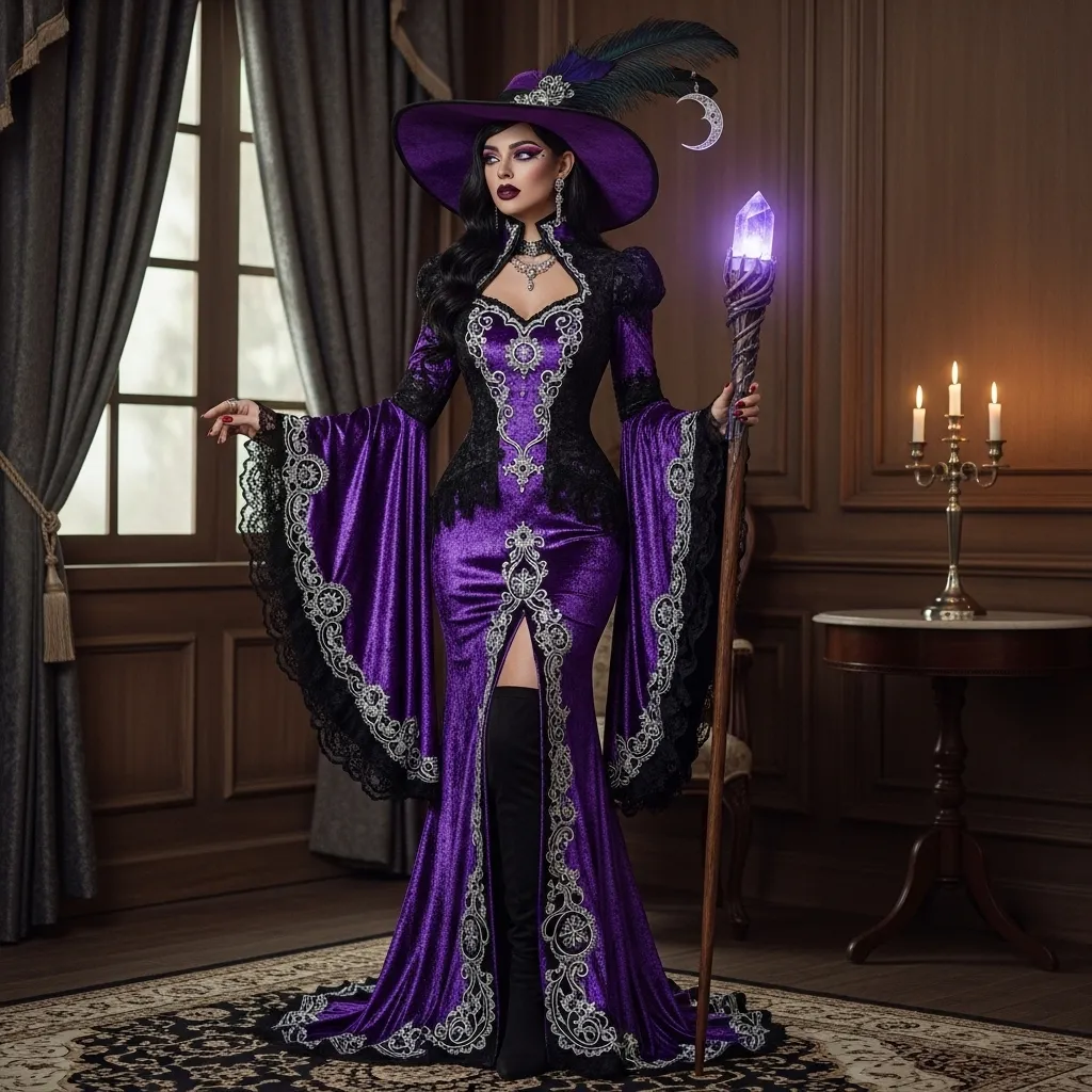 To modernize this outfit, incorporate unexpected textures like sequins or leather. You can even layer different tones of black—matte, shiny, or sheer—to add depth. A touch of sparkle around the eyes or a bold nail design adds a playful twist. The glamorous witch outfit works well for both casual house parties and upscale Halloween events, giving you a perfect balance of spooky and stylish.