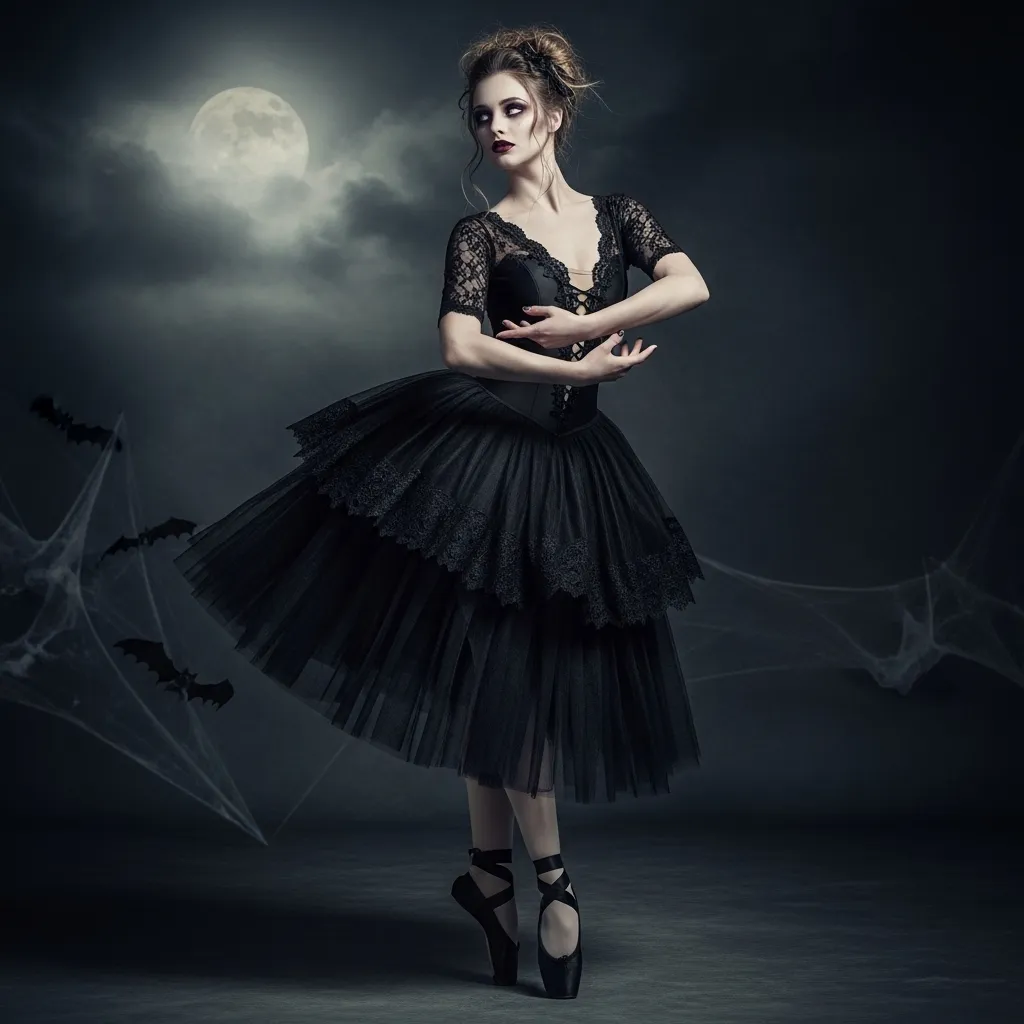 The gothic ballerina blends grace with darkness. Start with a black or burgundy tulle tutu skirt, paired with a lace bodice or corset. Ballet flats or lace-up boots add to the vibe. Fishnet stockings or lace gloves can provide extra detail.