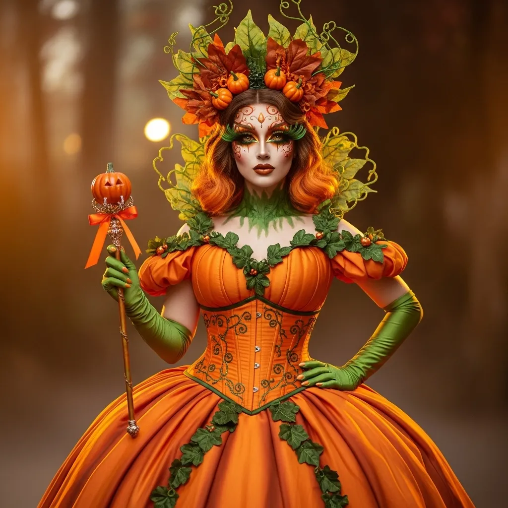 The pumpkin queen outfit puts a playful spin on Halloween’s most iconic symbol. Start with a pumpkin-orange dress, corset, or ballgown, accented with leafy green details at the neckline or waist. Add a crown made of vines, leaves, or mini pumpkins for a regal finish. Accessories like pumpkin-shaped earrings or orange-and-black jewelry tie the outfit together beautifully.