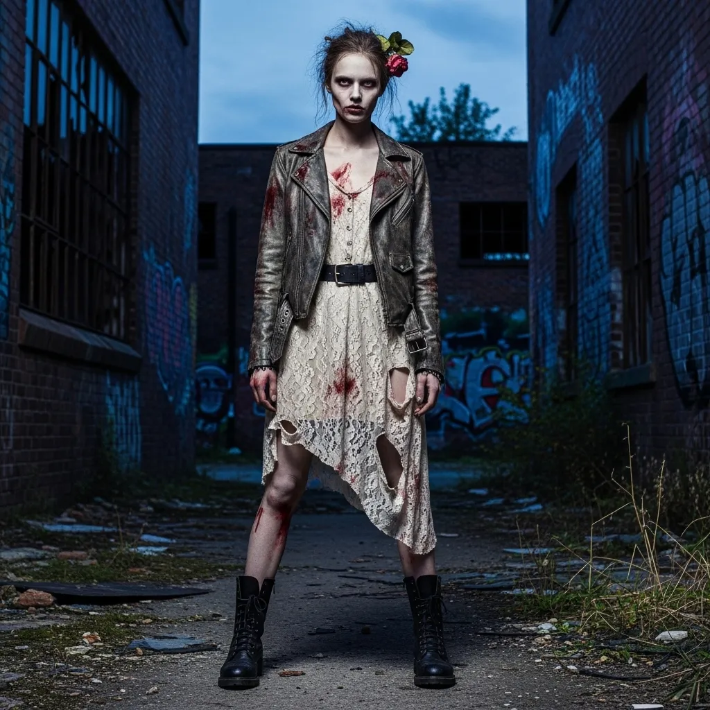 A zombie-inspired outfit doesn’t have to be all gore—it can be both terrifying and stylish. Ripped jeans, distressed tops, and tattered layers create a rugged base. You can DIY fake blood stains and shredded fabrics to make it authentic. Pair the outfit with chunky boots or sneakers for comfort. Makeup is the star here: pale foundation, dark circles, and blood-red smudges create a chilling undead vibe.