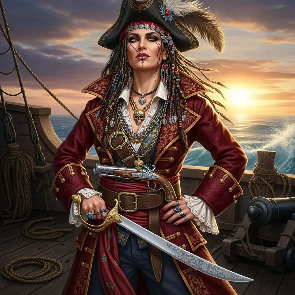 Nothing says adventurous Halloween vibes like a pirate queen costume. The outfit often features a ruffled blouse, corset, and layered skirts, paired with knee-high boots. To really make it queen-worthy, add a bold pirate hat with feathers, statement belts, and jewelry. Gold hoops, layered necklaces, and chunky rings help complete the sea-rover aesthetic.