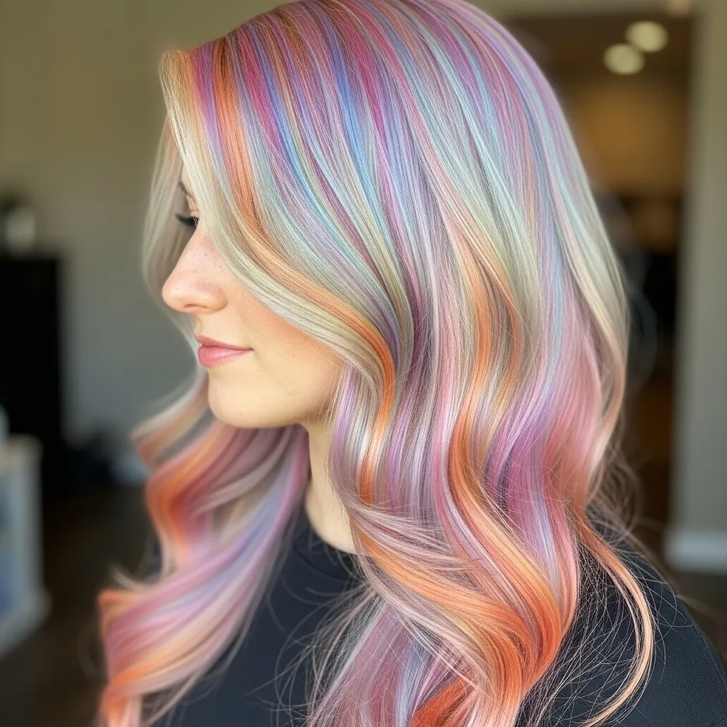 Styling Tip: Use a curl wand to create loose waves—this enhances the mix of colors, making them look like watercolor brushstrokes.