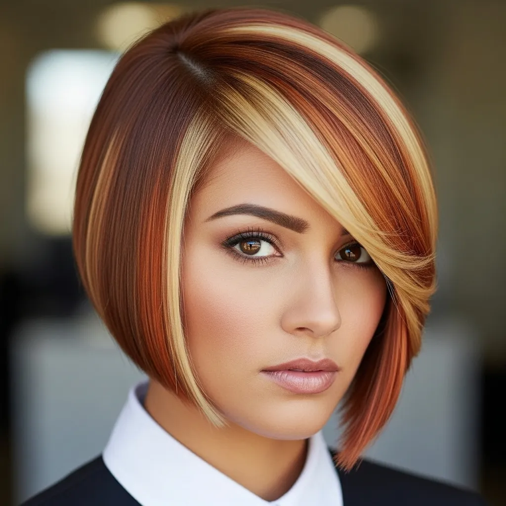 A warm copper base with buttery blonde highlights is one of the most flattering calico combos. It gives your hair a sunlit glow while keeping it multidimensional and wearable for everyday looks.