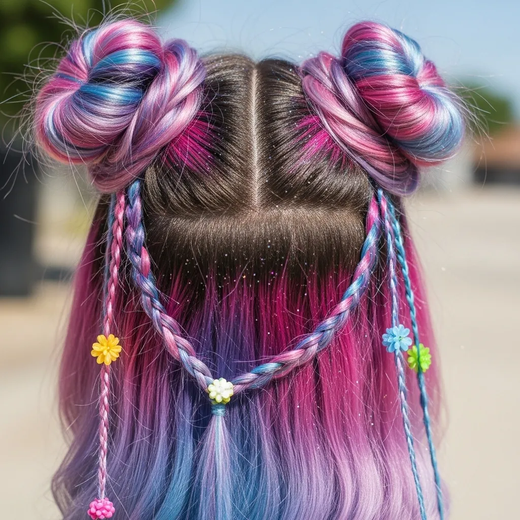 Pro Tip: Add braids or space buns for fun styling—braids especially help showcase all the hidden shades within your calico blend.