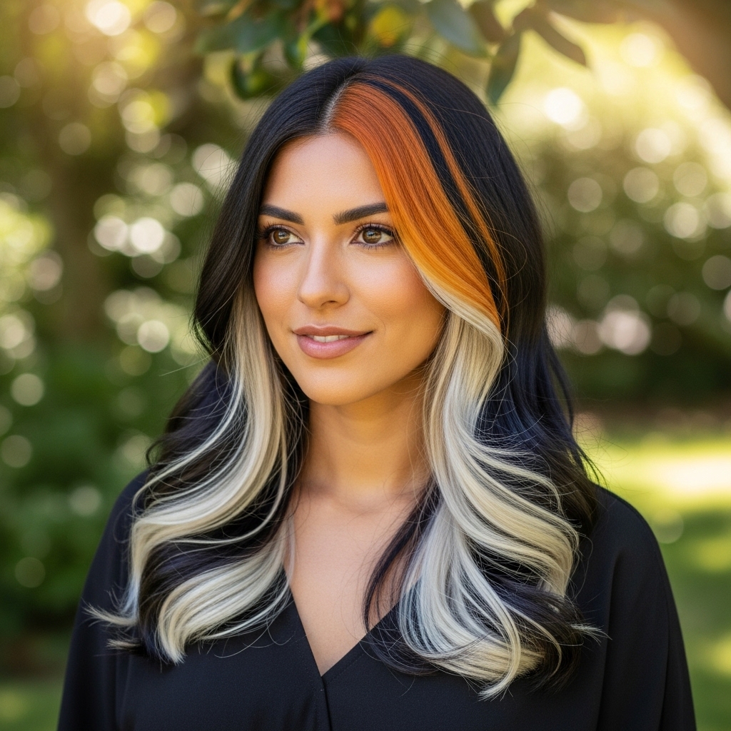 Styling Tip: Loose curls or waves highlight the color contrast beautifully—use a lightweight mousse to keep curls bouncy.