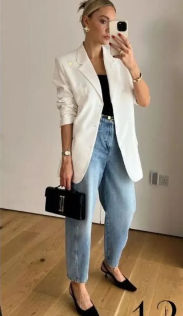 This classic combo is the perfect marriage of sophistication and ease. Begin with a crisp white crew-neck tee, preferably slightly oversized or with a subtle ribbed texture to keep it modern. Layer on a structured blazer opt for a camel, slate gray, or even muted plaid for visual depth. The relaxed, high-waisted trousers should offer soft movement and a flattering taper or wide-leg cut that elongates the silhouette.