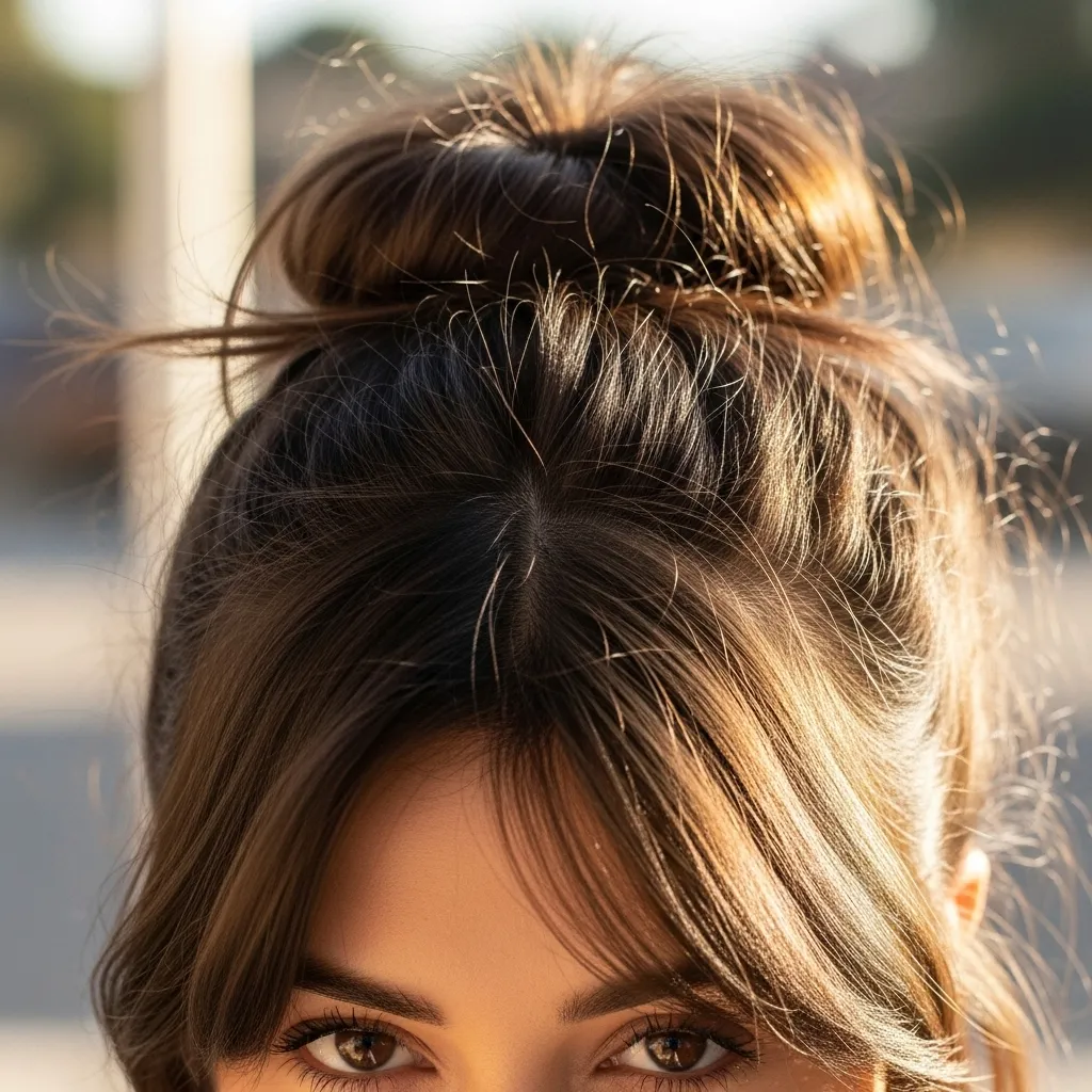 The messy top knot is casual, stylish, and incredibly easy to achieve, making it ideal for busy mornings, casual outings, brunches, or even evening parties. Unlike formal buns, the messy top knot embraces imperfection, giving a relaxed, carefree vibe. To create it, gather your hair at the crown, twist it loosely into a bun, and secure with hairpins or a tie. Allow a few face-framing strands to fall naturally for softness. This hairstyle works for medium to long hair and can be paired with casual outfits or dressy ensembles when accessorized with hairpins, scrunchies, or decorative clips.