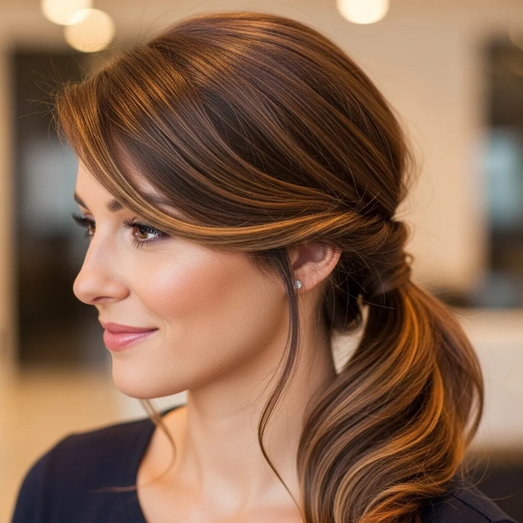 The side ponytail with twist highlights facial features, adds texture, and provides a stylish asymmetrical appearance. Women love it for its modern, youthful vibe, ease of styling, and adaptability for various occasions. It’s perfect for those seeking a cute, playful hairstyle that balances fashion and practicality, creating a polished yet effortless look for everyday or special events.