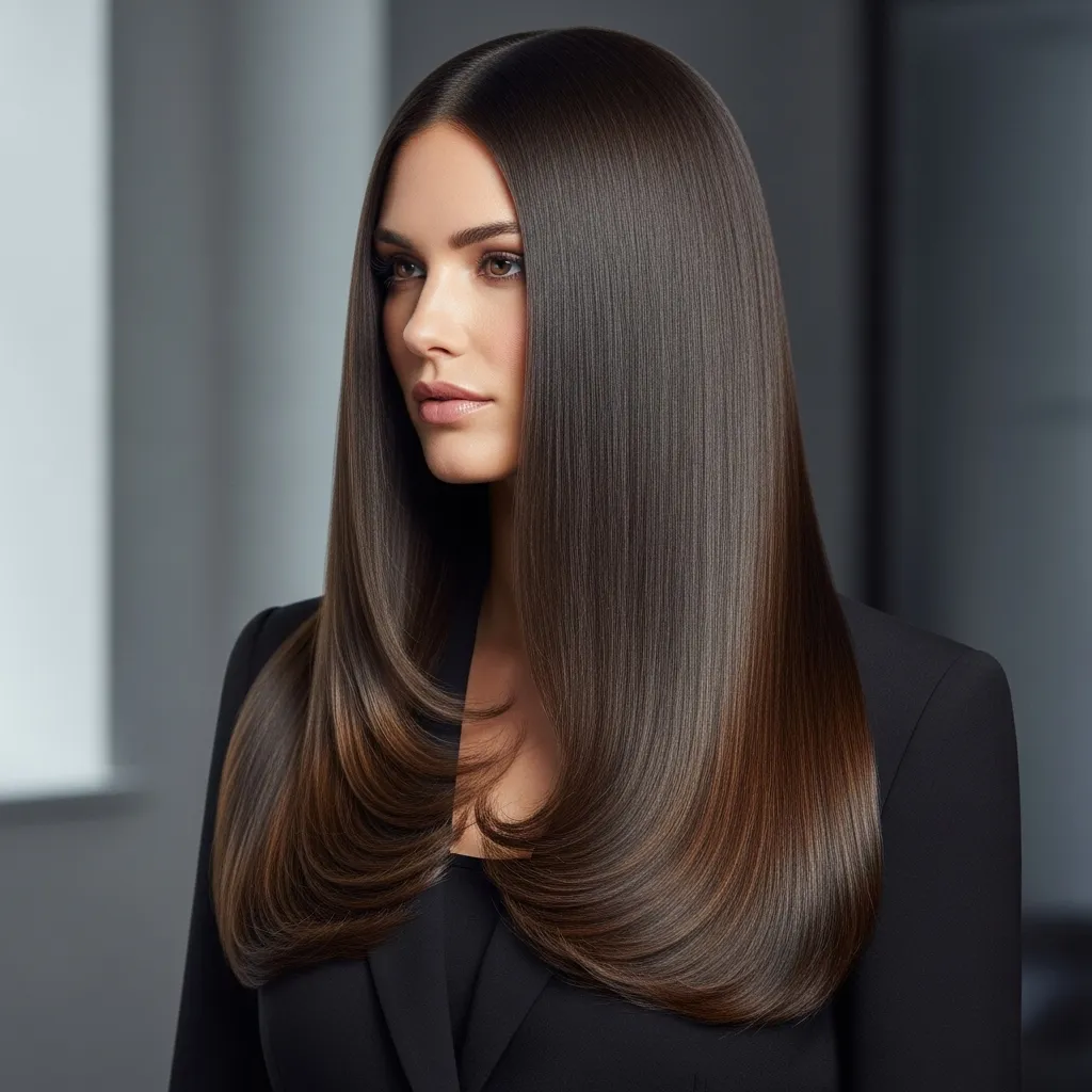Sleek straight hair with a middle part is a modern, chic, and versatile hairstyle suitable for everyday wear, professional settings, or evening events. This style emphasizes symmetry, highlights facial features, and creates a polished look. To achieve it, straighten hair with a flat iron and apply heat protectant and shine serum for a glossy finish. Middle-parted straight hair complements all hair lengths, though medium to long hair provides the best effect.