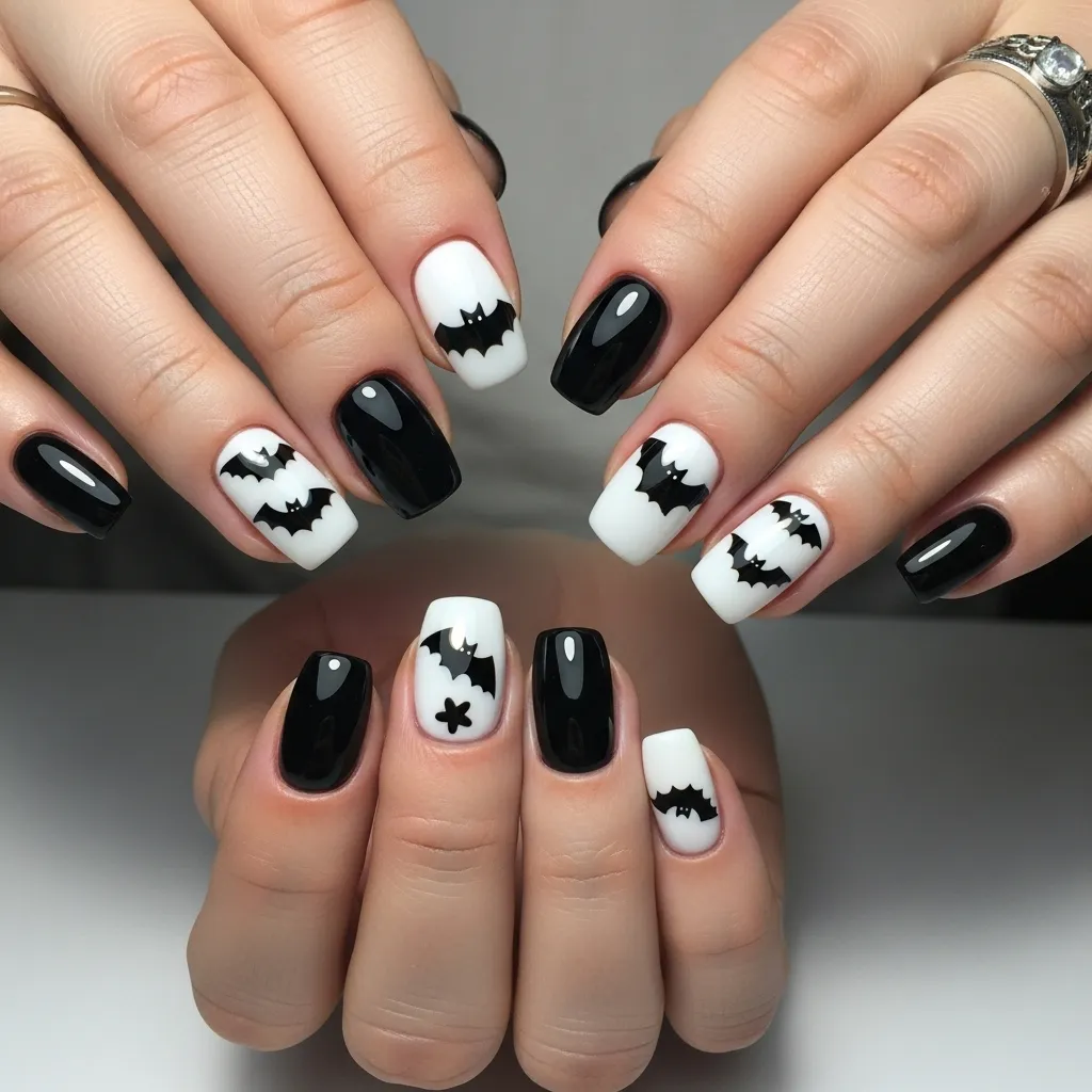 Pairing bats with ombre skies or glittery moons enhances the overall design. Bat nails bring the perfect blend of spooky and cute for the season.