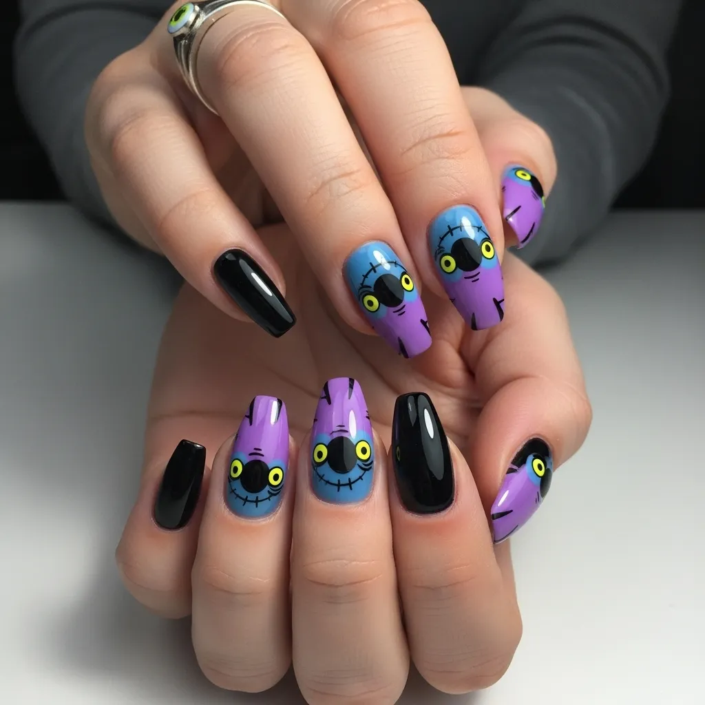 This style works especially well on longer nails where intricate details can be painted. Glow-in-the-dark polish adds extra Halloween magic.