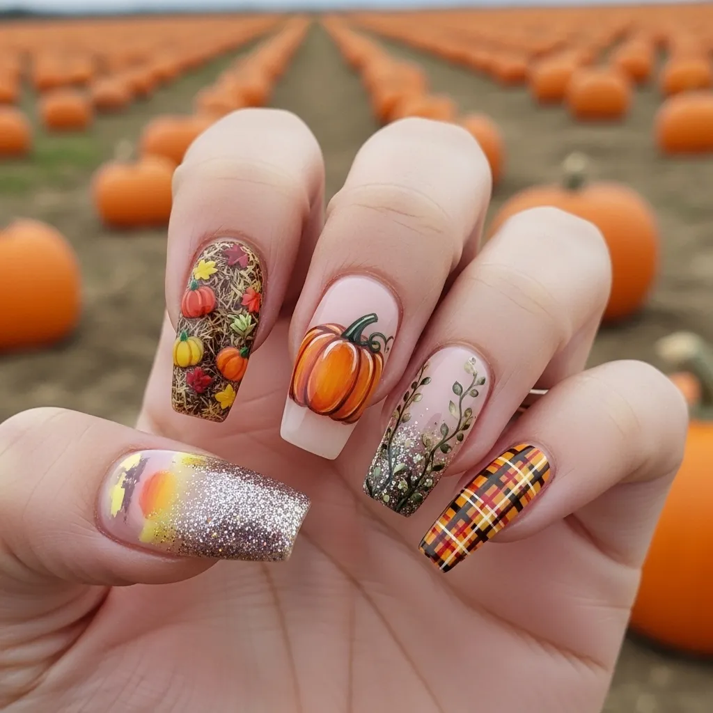 Perfect for autumn lovers, this nail art works from October straight through Thanksgiving, making it versatile and stylish.