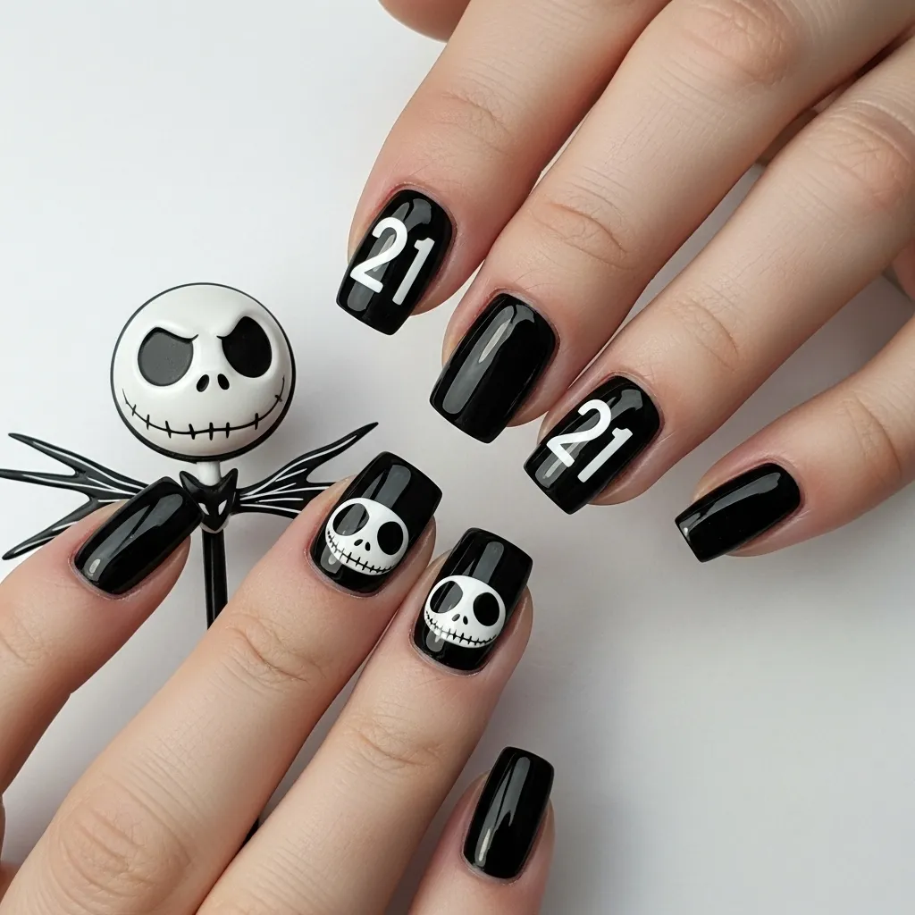 Inspired by The Nightmare Before Christmas, Jack Skellington designs are a cute and spooky favorite. His iconic face looks striking against black or purple bases.