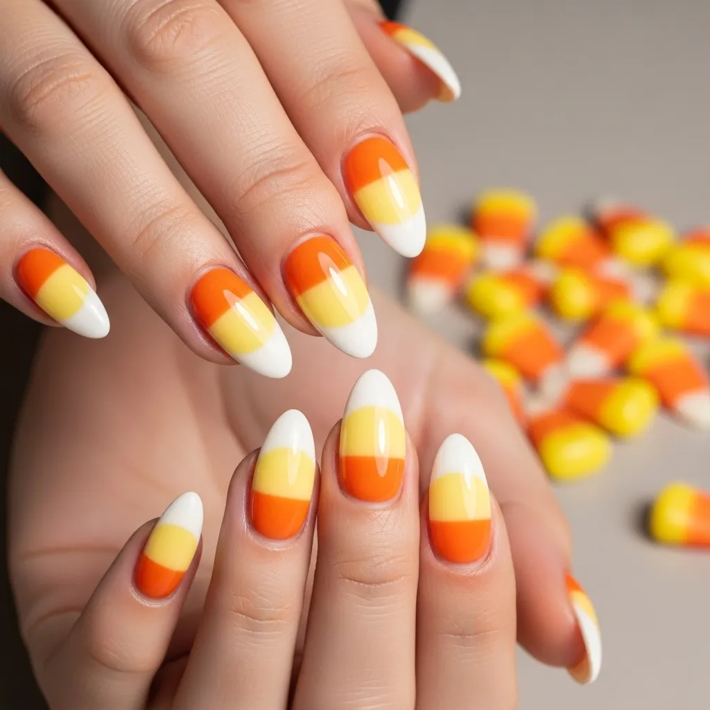 Candy corn is a Halloween treat with instantly recognizable colors—orange, yellow, and white. Painting nails in candy corn ombre is a fun, bright way to celebrate.