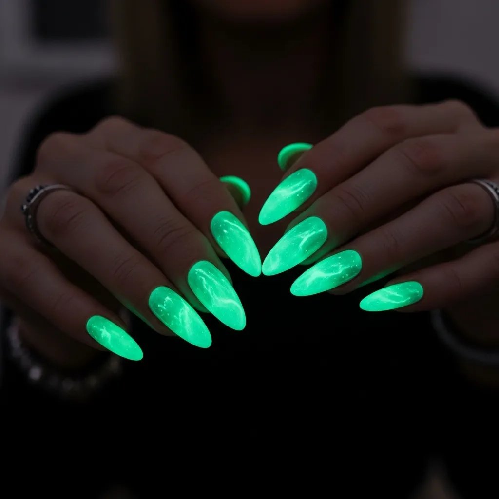 This design is great for parties or haunted houses, where glowing nails can really stand out. It’s both witchy and playful, keeping the fun alive all night long.