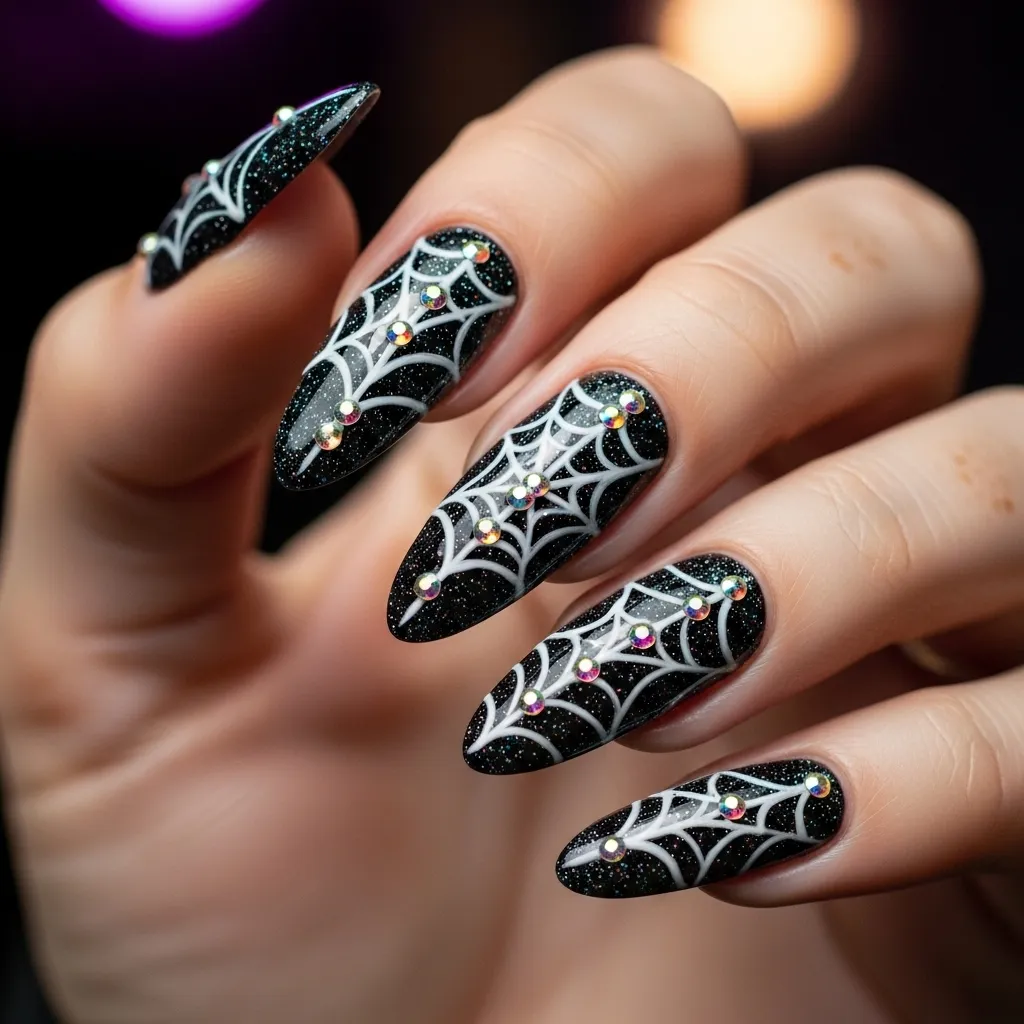 3. Glitter Spiderweb Acrylic Nails
