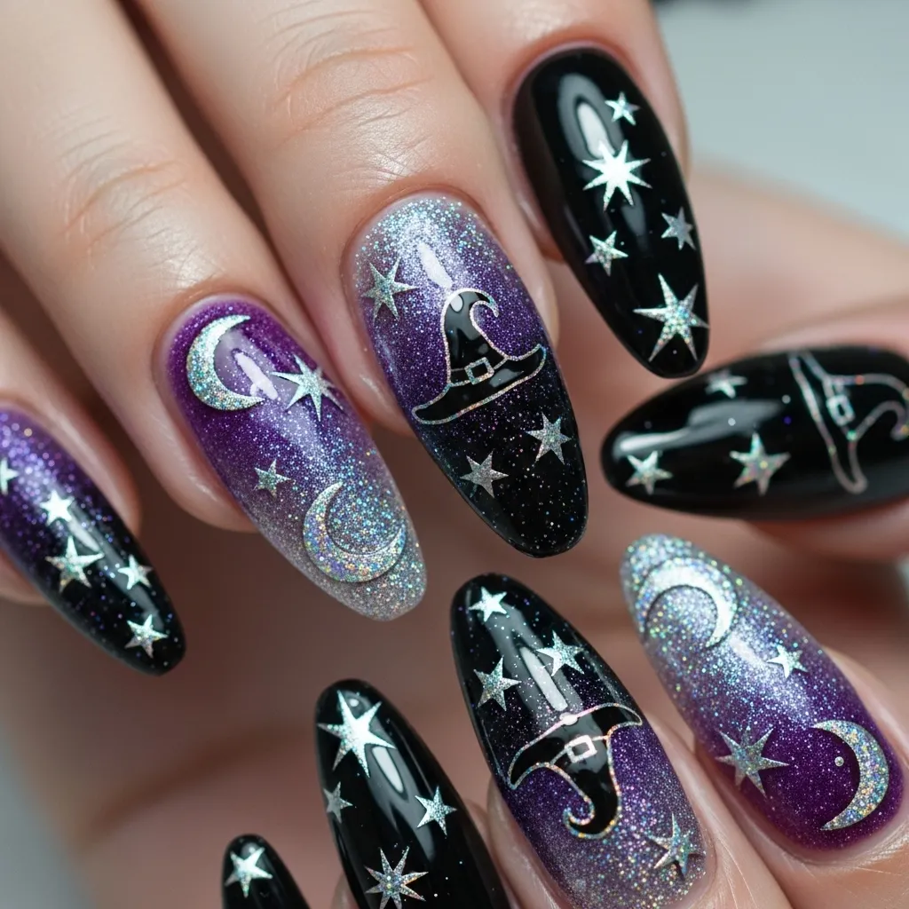 5. Witch Hat Accent Nails