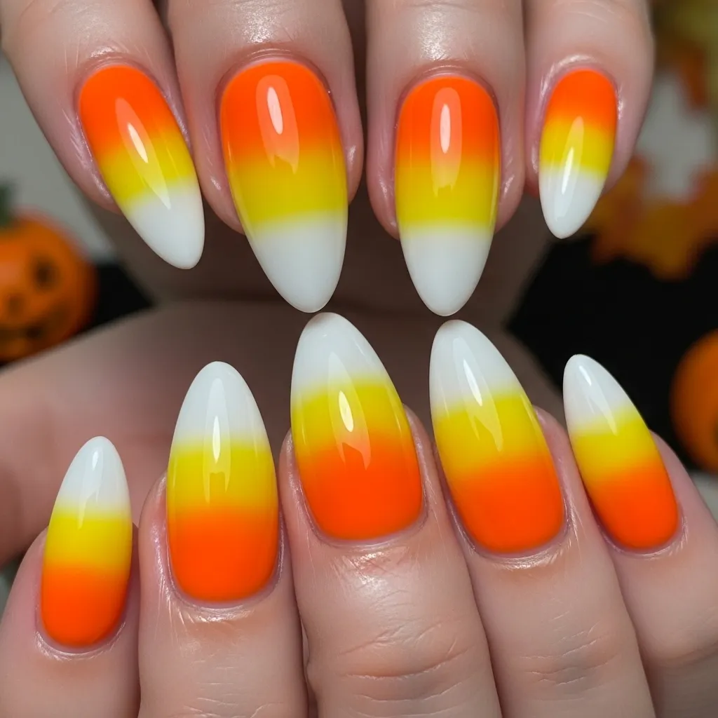 6. Candy Corn Ombre Nails