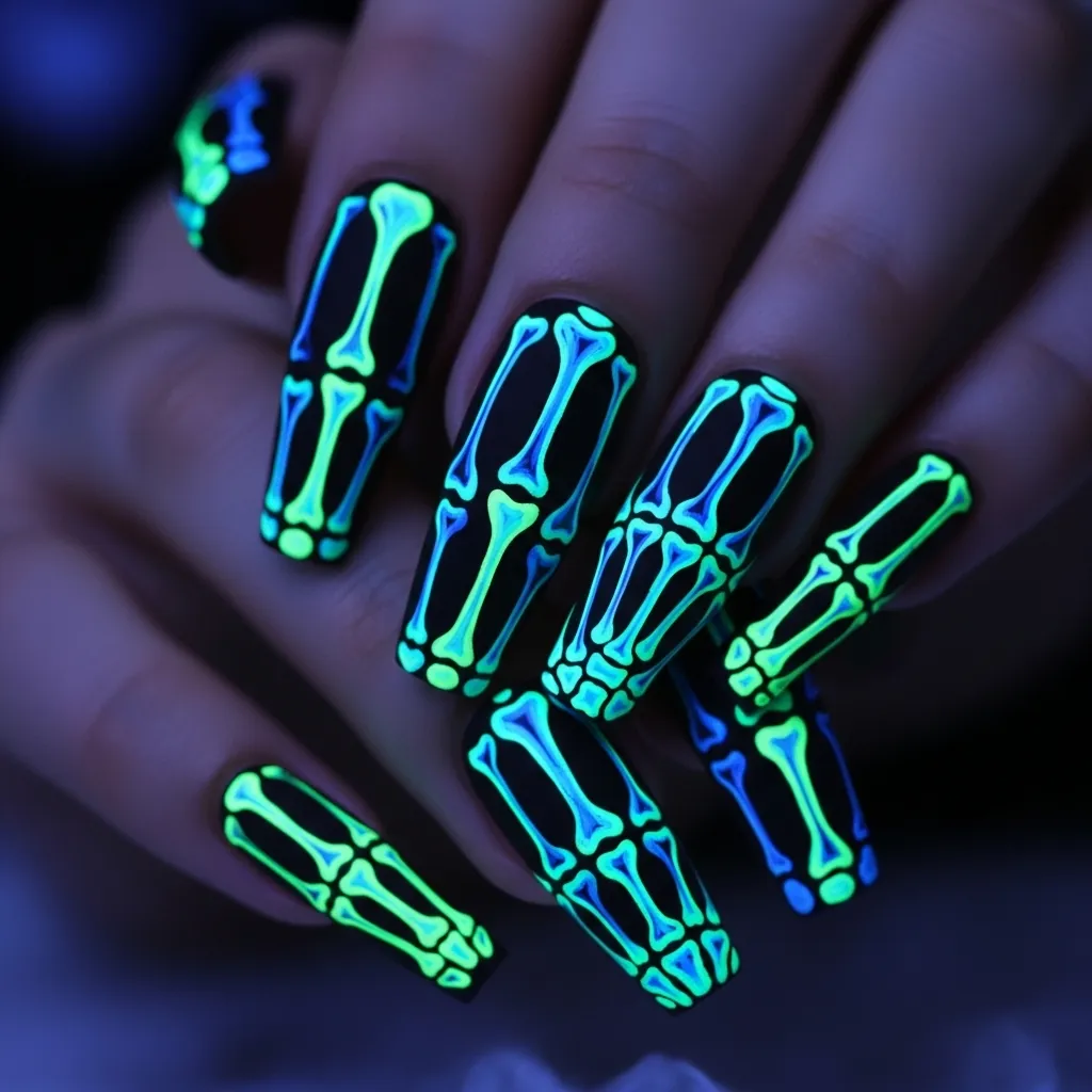9. Glow-in-the-Dark Skeleton Nails
