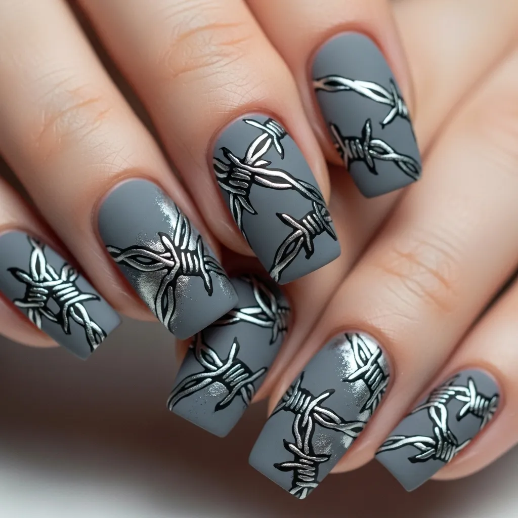 Add a matte finish for ruggedness or metallic foils for a dramatic edge. These nails pair perfectly with dark costumes, grunge-inspired outfits, or even simple black clothing where you want your nails to take center stage. Rustic barbed wire nails deliver Halloween grit with a fashion-forward twist.