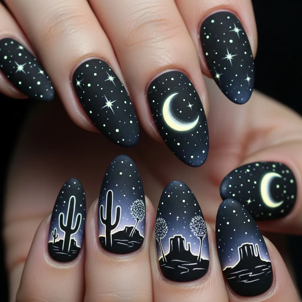 16. Western Starry Night Nails