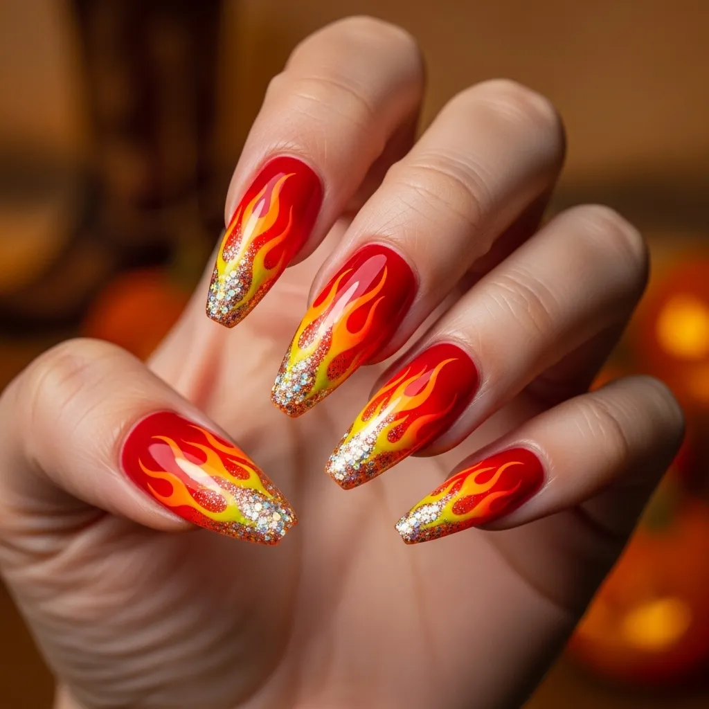 24. Rodeo Fire Flame Nails