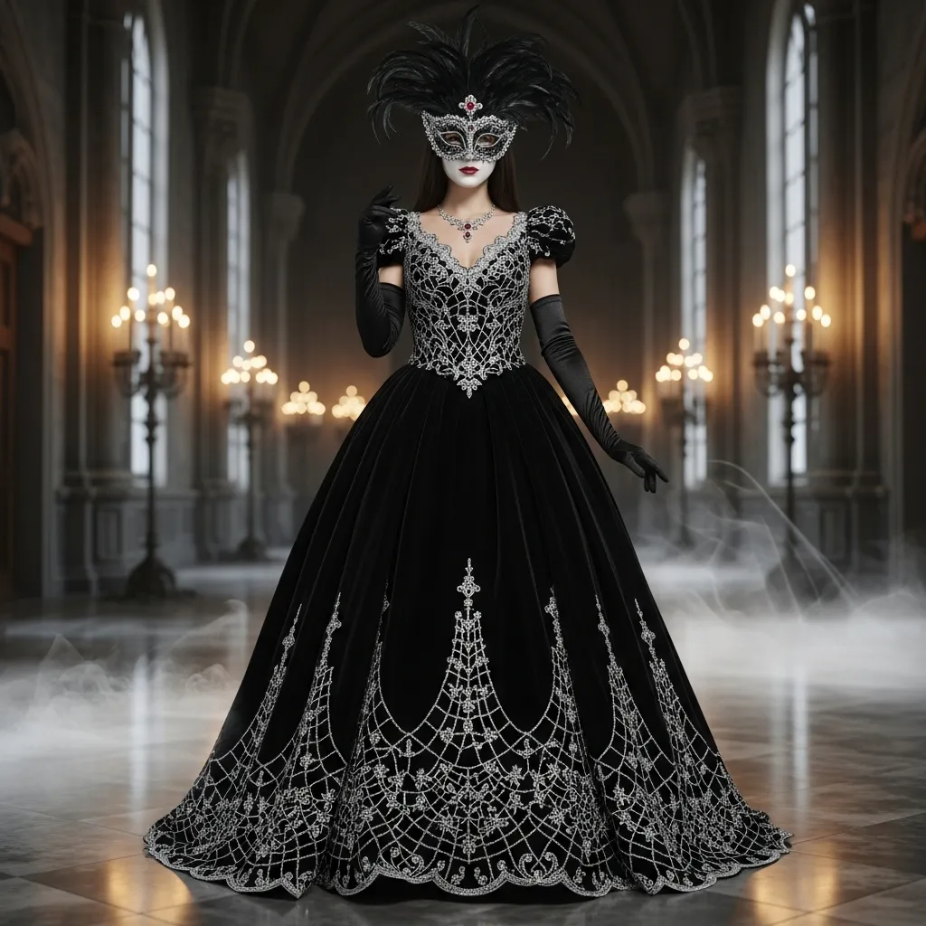 Accessories like opera gloves, feathered fans, or chokers elevate the costume. Hairstyles such as voluminous curls, updos, or hair adorned with jeweled pins add sophistication.This costume is versatile—it works for elegant Halloween parties, masquerade balls, or themed photo shoots. The phantom masquerade perfectly captures spooky glamour while remaining timeless and chic.