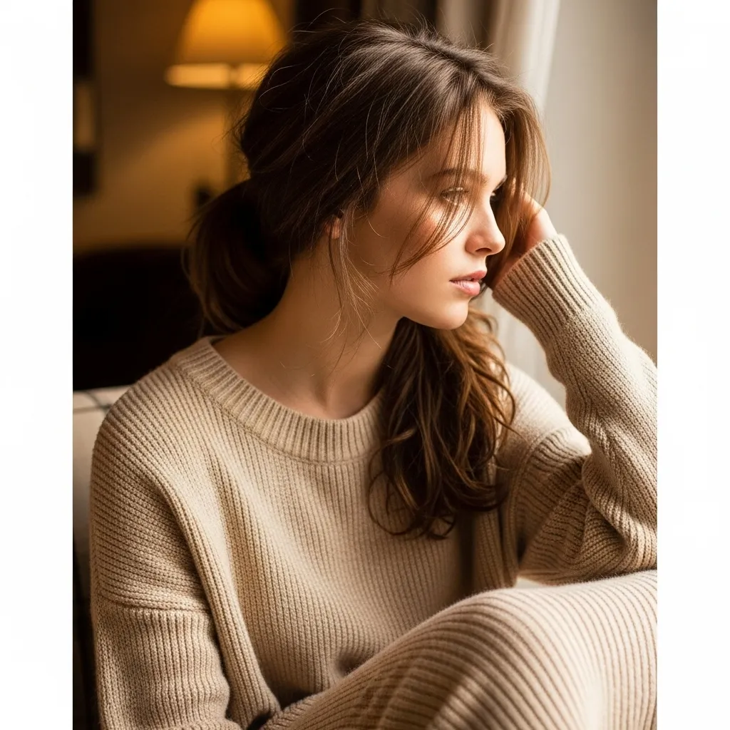 The half-up half-down hairstyle adds versatility to ribbed turtlenecks, blending playful charm with cozy chic elegance. It keeps the hair away from the face while still showing off natural texture. This hairstyle is great for brunches, casual office days, or winter outings, as it strikes the right balance between polished and effortless. Combined with a ribbed turtleneck, it creates a modern cozy chic fashion statement that looks stylish, comfortable, and easy to pull together.