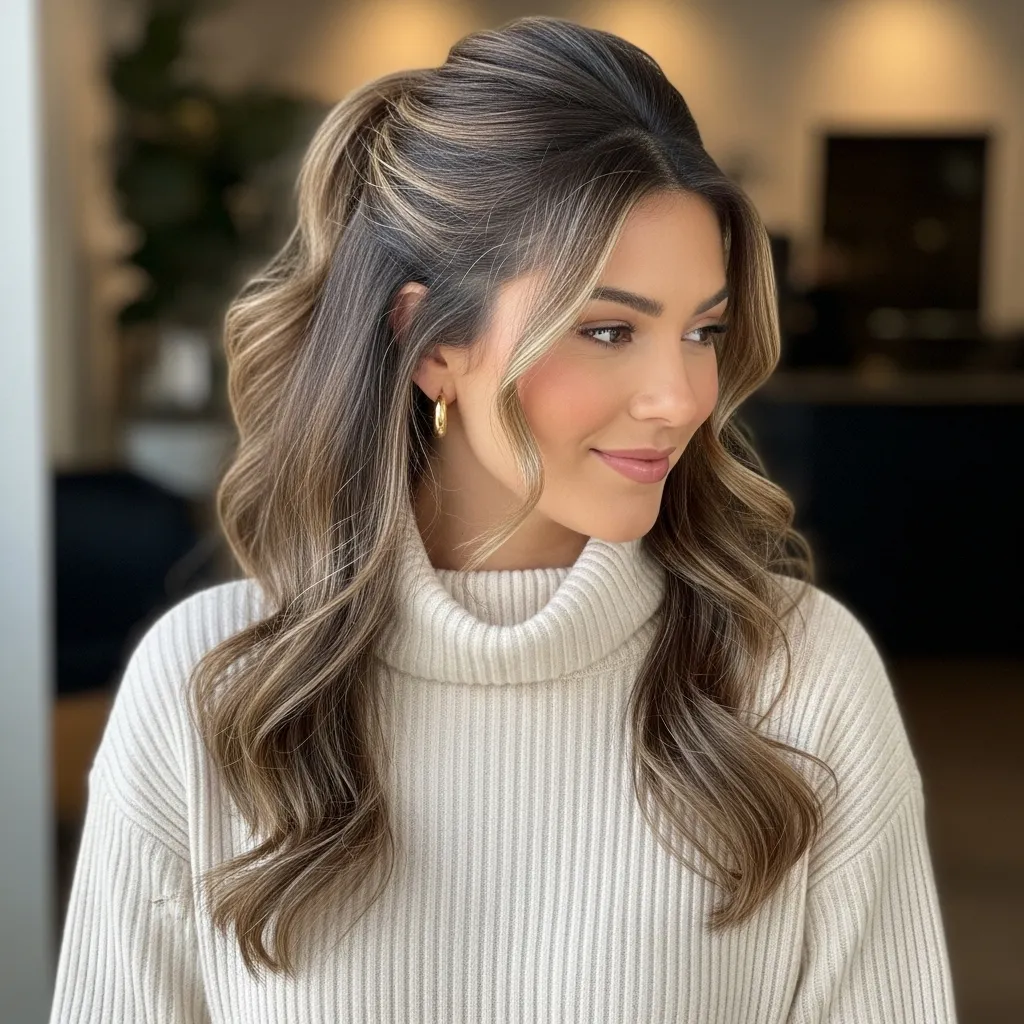 The twisted half-up hairstyle pairs beautifully with chunky knit sweaters. It pulls hair away from the face while keeping a soft, romantic flow. This cozy chic hairstyle works for casual dinners, seasonal outings, or winter gatherings. Its twisted design adds texture and interest while highlighting the sweater’s neckline. Easy to style and versatile, the twisted half-up is a charming, practical hairstyle that enhances cozy chic fashion in colder months.