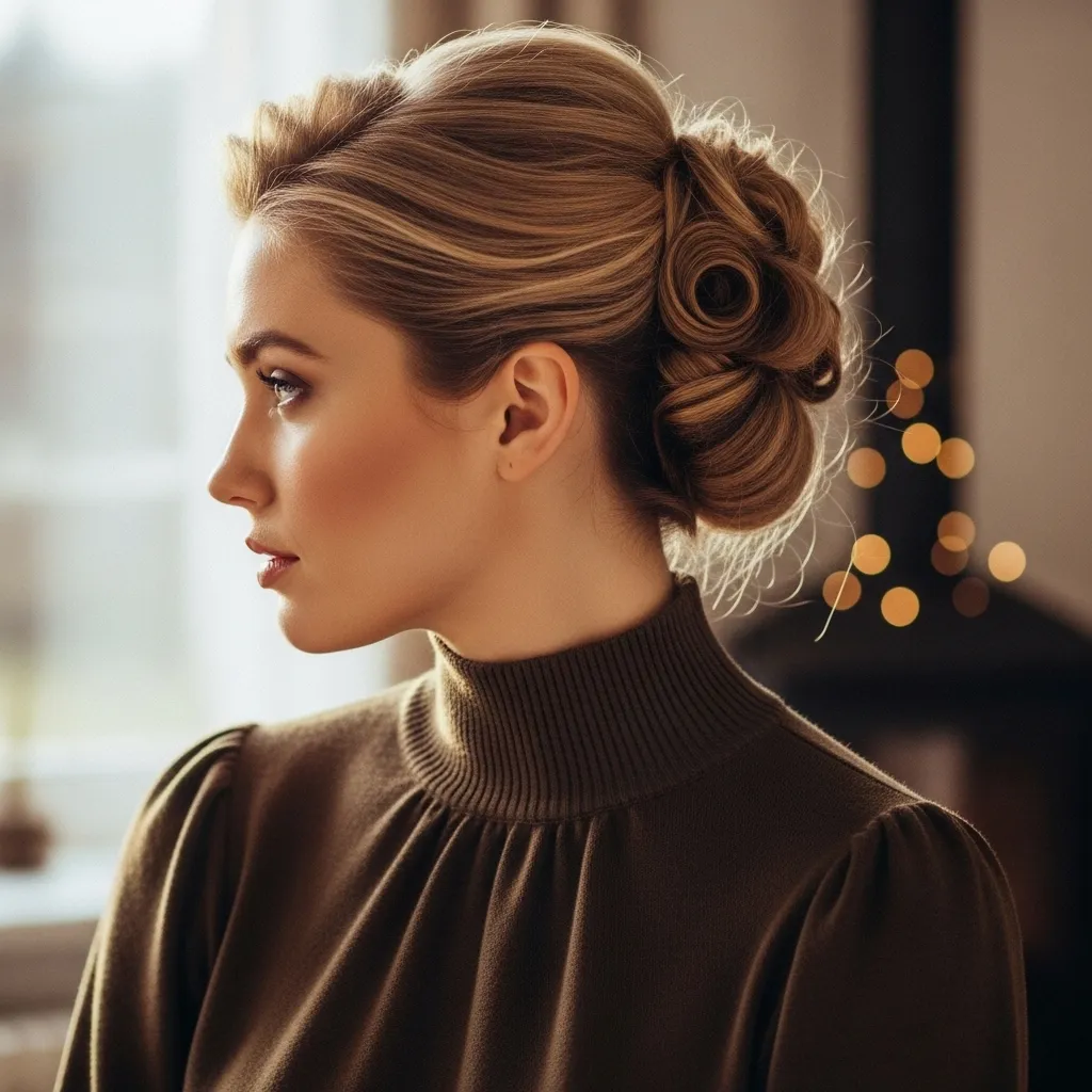 The French twist is a classic updo that works beautifully with sleek high neck blouses. It draws attention to the neckline while keeping hair secure and polished. Perfect for formal events, professional settings, or stylish winter gatherings, this hairstyle offers timeless sophistication. Its structured design balances the snug, elegant look of high neck outfits, creating a chic fashion statement. Together, the French twist and high neck blouse exude cozy chic confidence and elegance.
