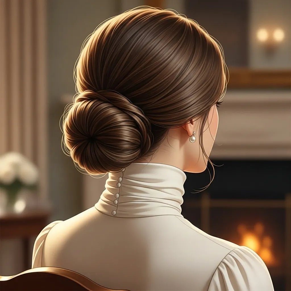 The low side bun is a hairstyle that blends romance with practicality, making it a natural fit for high neck blouses. Its placement—low and slightly off to one side—adds visual interest while ensuring the blouse’s neckline remains the focal point. This combination makes the look elegant yet cozy chic, perfect for winter fashion.