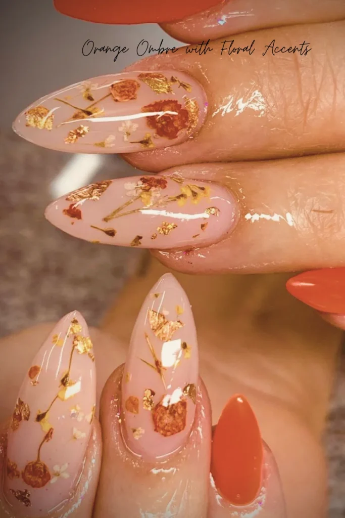 6. Orange Ombre with Floral Accents