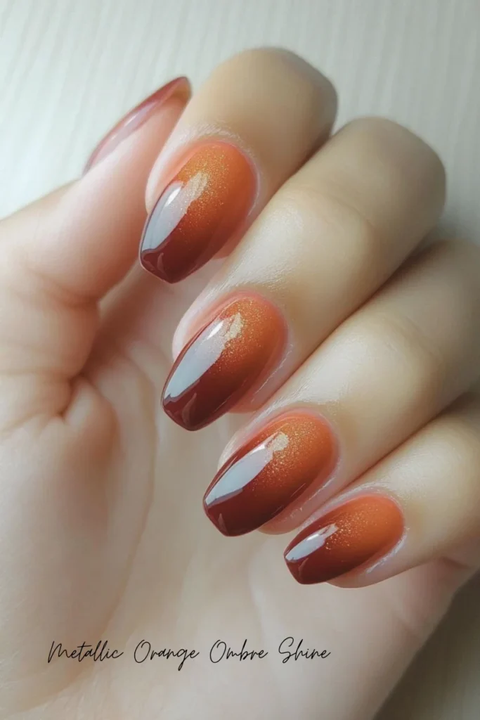 8. Metallic Orange Ombre Shine
