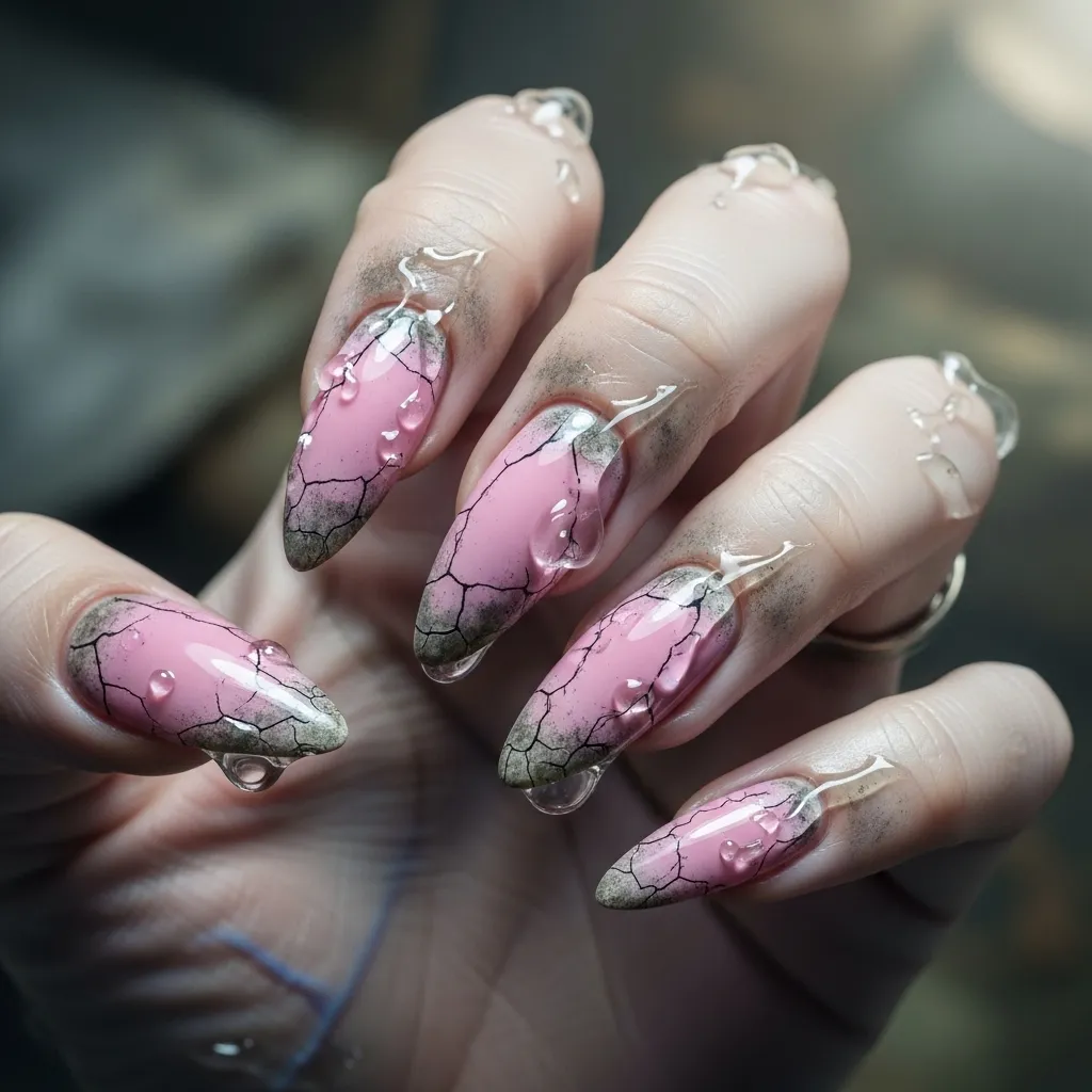 16. Pastel Pink Zombie Nails