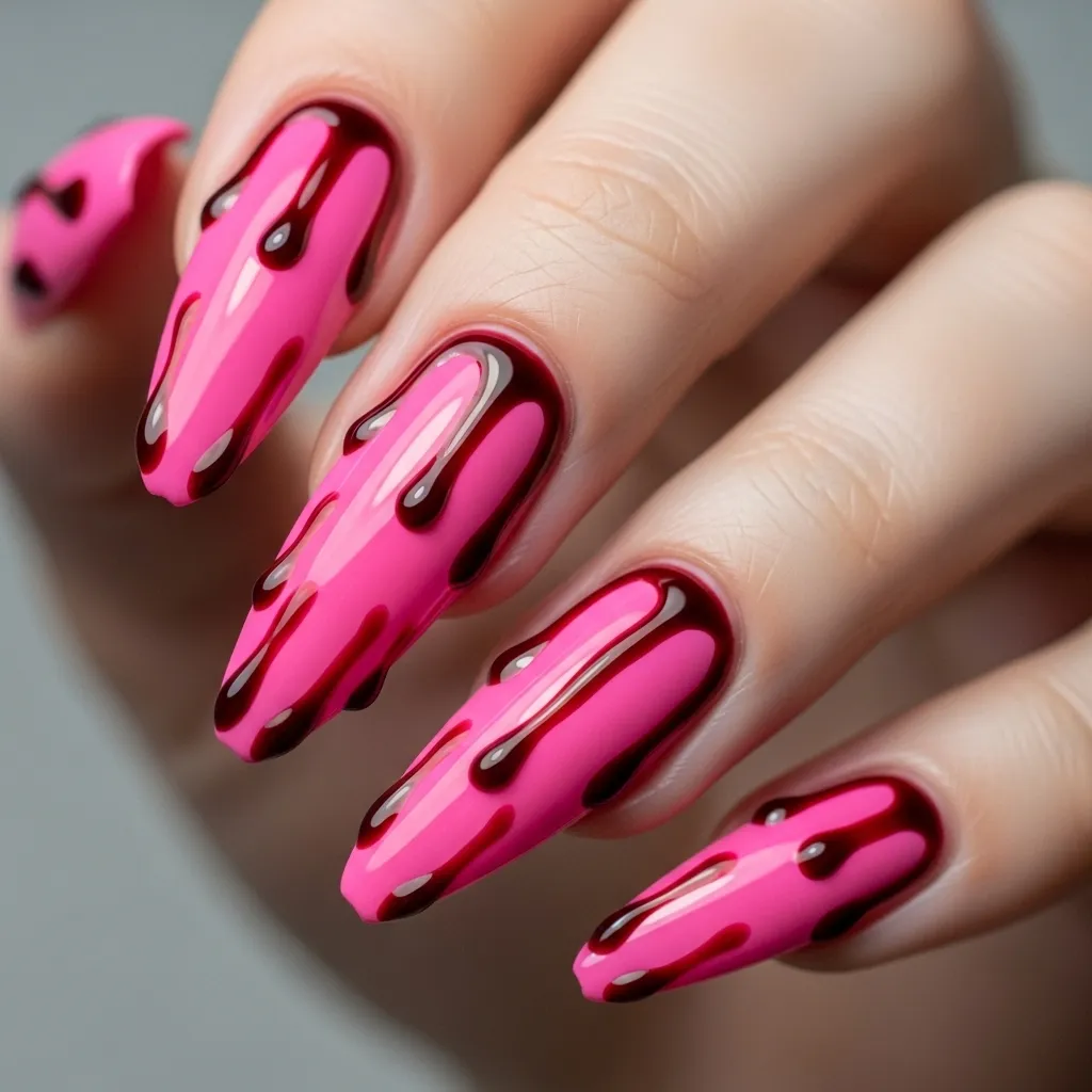 7. Bloody Pink Drip Nails