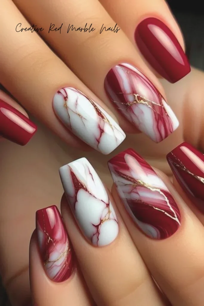 10. Creative Red Marble Nails