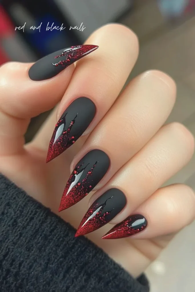 Red and black nails scream confidence and boldness. This combination is dramatic and powerful, instantly drawing attention and making a fashion statement.