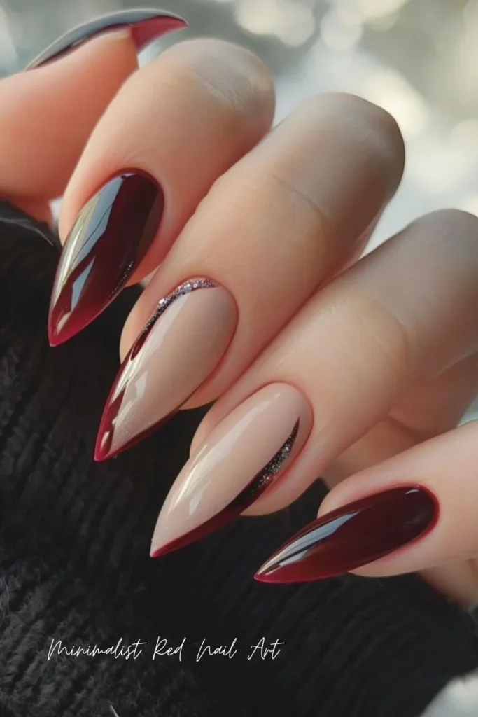 This approach proves that sometimes less is more. With minimalist red nail art, your nails remain fashionable and classy without needing extravagant designs.
