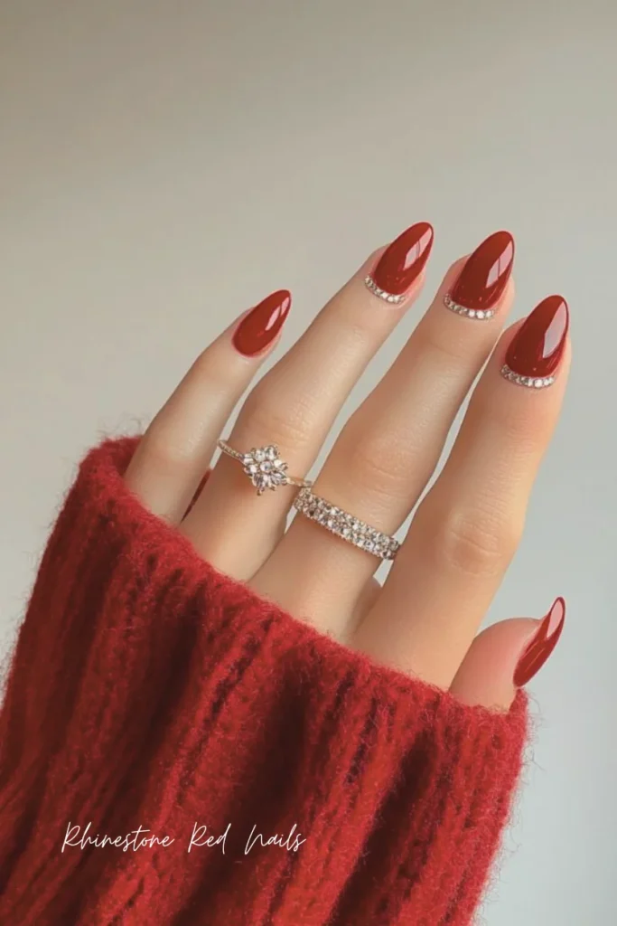 8. Rhinestone Red Nails