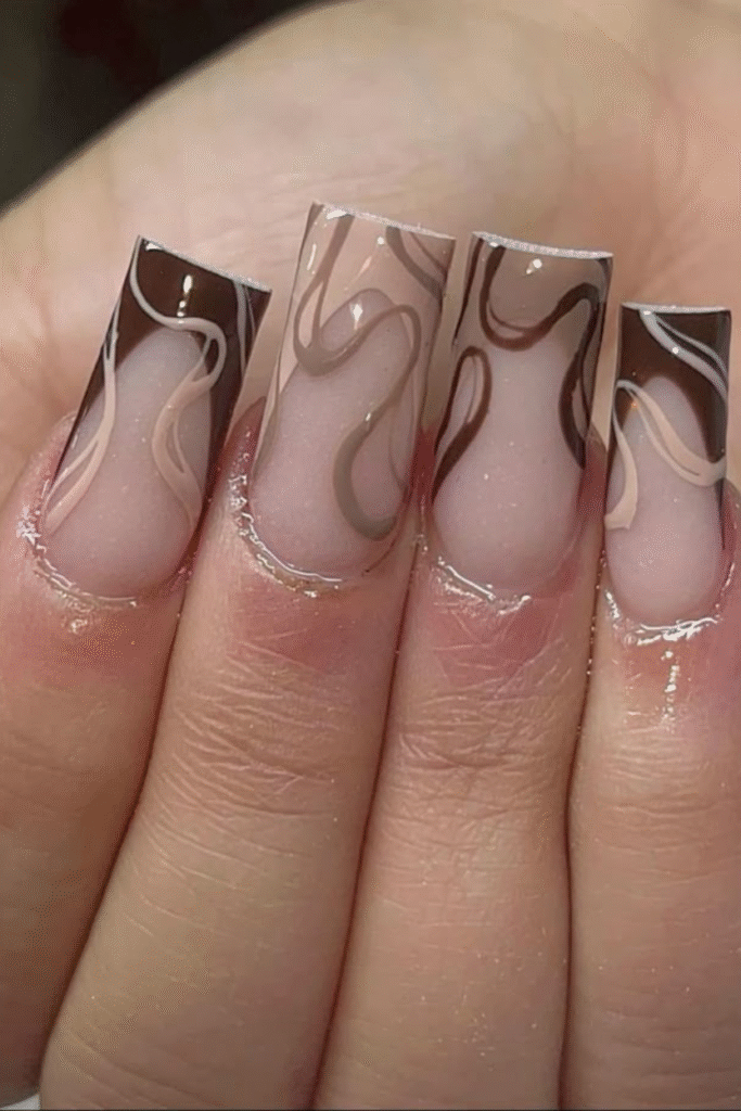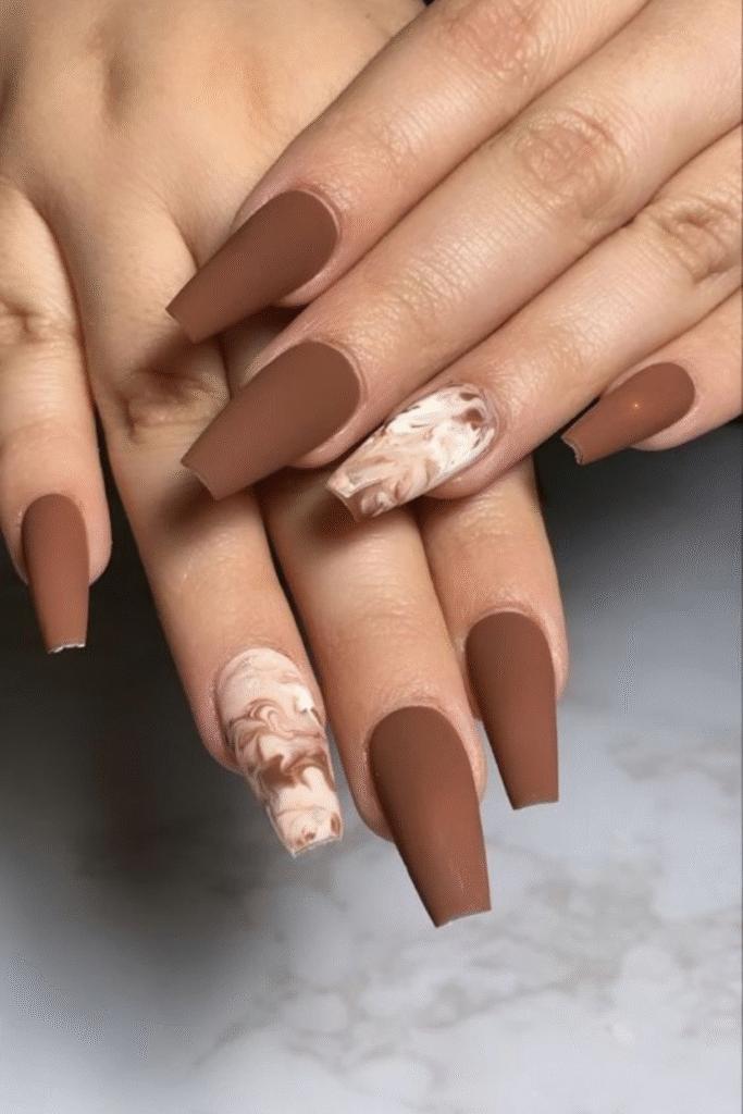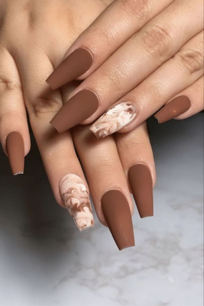 Marble nails are pure artistry, and brown versions give an earthy yet chic twist.