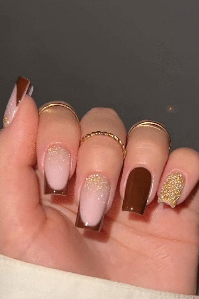 Brown glitter nails strike the perfect balance between subtle shimmer and festive glam.