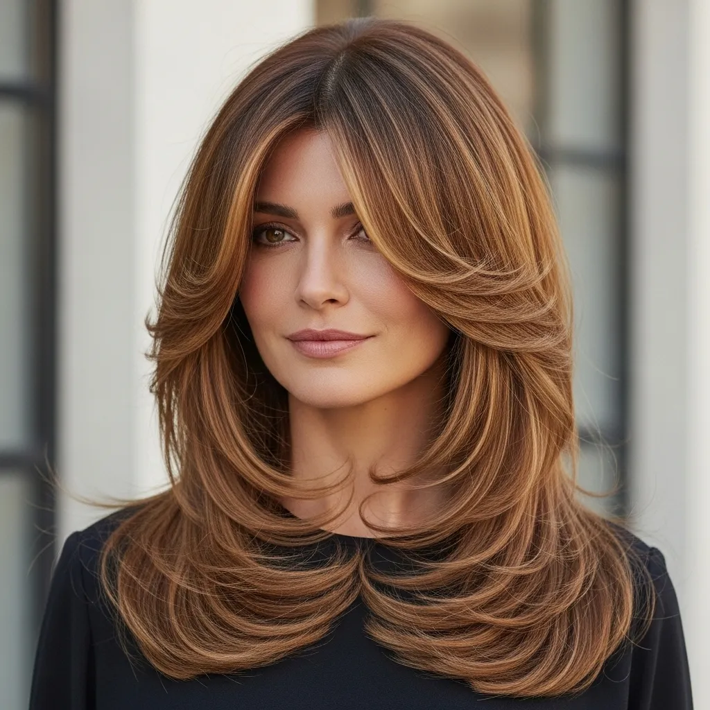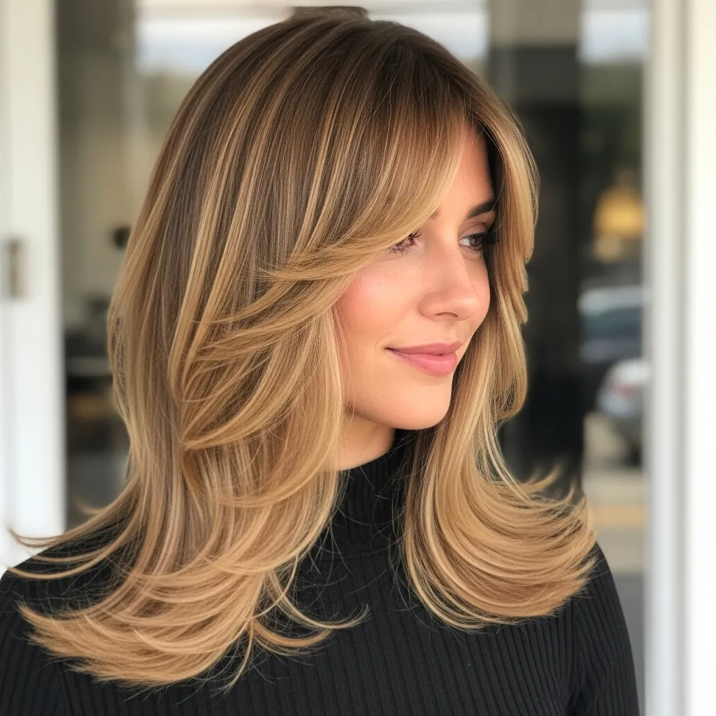 Side-swept long layers are a classic and versatile hairstyle that adds sophistication, softness, and dimension to long hair. By cutting the hair into layers and sweeping them to one side, this style creates volume, movement, and a natural flow that frames the face beautifully. It is suitable for all hair types, including straight, wavy, or curly textures. The beauty of side-swept long layers lies in their ability to complement various face shapes. For round faces, longer layers elongate the face, while layered cuts add softness to angular features. Subtle highlights or balayage can further enhance the depth and dimension of the hairstyle, creating an Instagram-worthy effect.