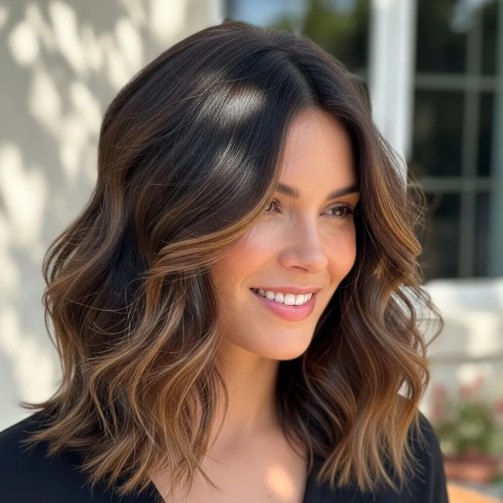 Textured layered waves are a versatile and trendsetting hairstyle, perfect for anyone looking to infuse volume, movement, and effortless charm into their hair. Layers create depth and dimension, making medium-length hair appear fuller and more dynamic. Tousled waves provide a natural, lived-in look that works for casual outings, professional settings, or special occasions.The beauty of this hairstyle is its flexibility. Loose waves give a relaxed, beachy look for everyday wear, while more defined curls or styled waves elevate the hair for parties, events, or photoshoots. Layers frame the face beautifully, complementing various face shapes. Those with round faces may opt for longer layers to elongate the profile, while shorter layers suit oval or heart-shaped faces perfectly.
